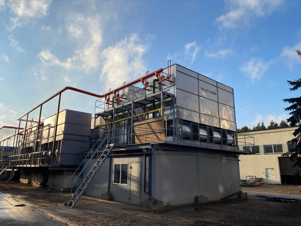 Za skraplanie amoniaku odpowiedzialne są 4 skraplacze natryskowo-wyparne o łącznej mocy chłodniczej 10 000 kW. W tym przypadku skraplacze zostały wykonane w całości ze stali nierdzewnej, co gwarantuje bardzo dużą odporność na warunki atmosferyczne.