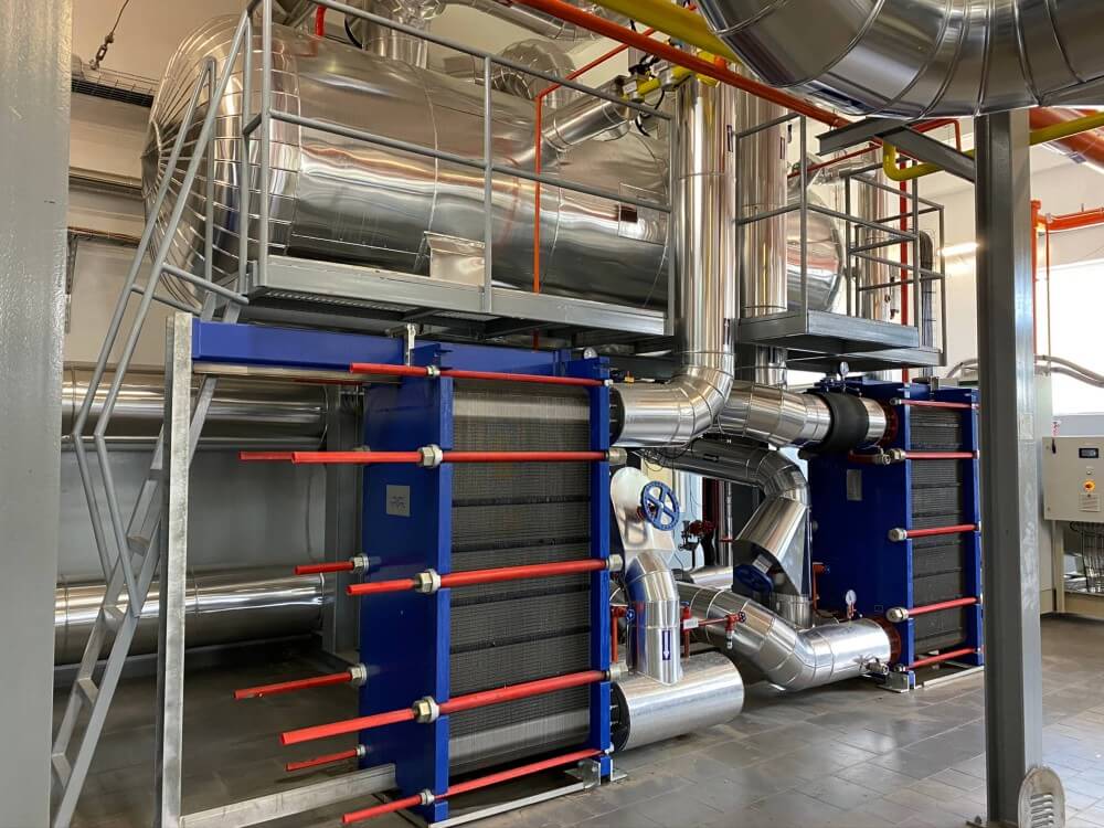 W instalacją pracują dwa poziome oddzielacze cieczy o łącznej pojemności ponad 20 000 litrów. Są one połączone z czterema wymiennikami płytowymi produkcji Alfa-Laval, które oddają chłód do wody lodowej.