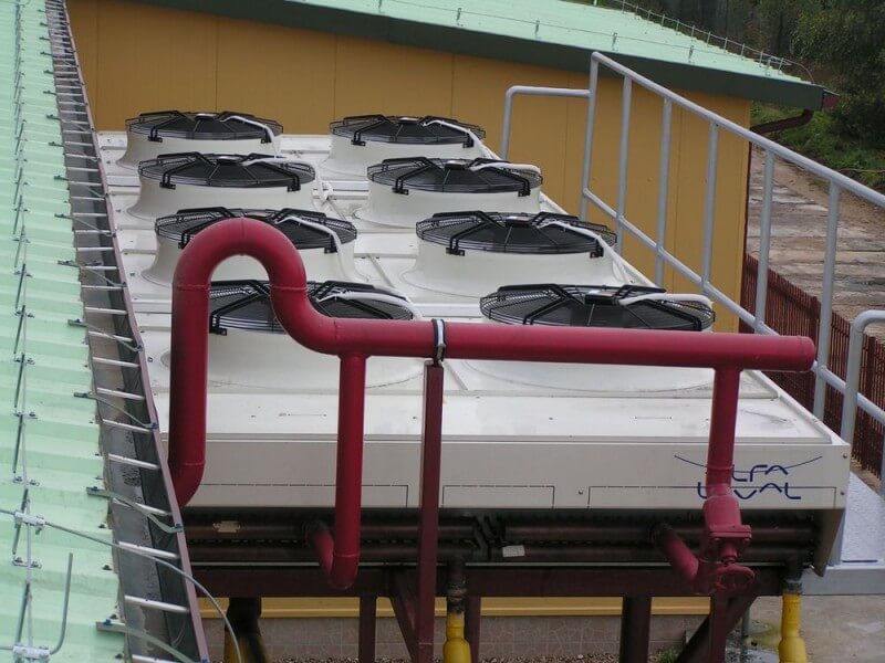 - Stosujemy układy odzysku ciepła skraplania - jest to ciepło wytworzone w procesie produkcji chłodu, które jest produktem „odpadowym” i w przypadku niewykorzystania go jest ono odparowywane. W przeciwnym razie możemy wykorzystać go do ogrzewania pomieszczeń, bądź procesów produkcyjnych.
